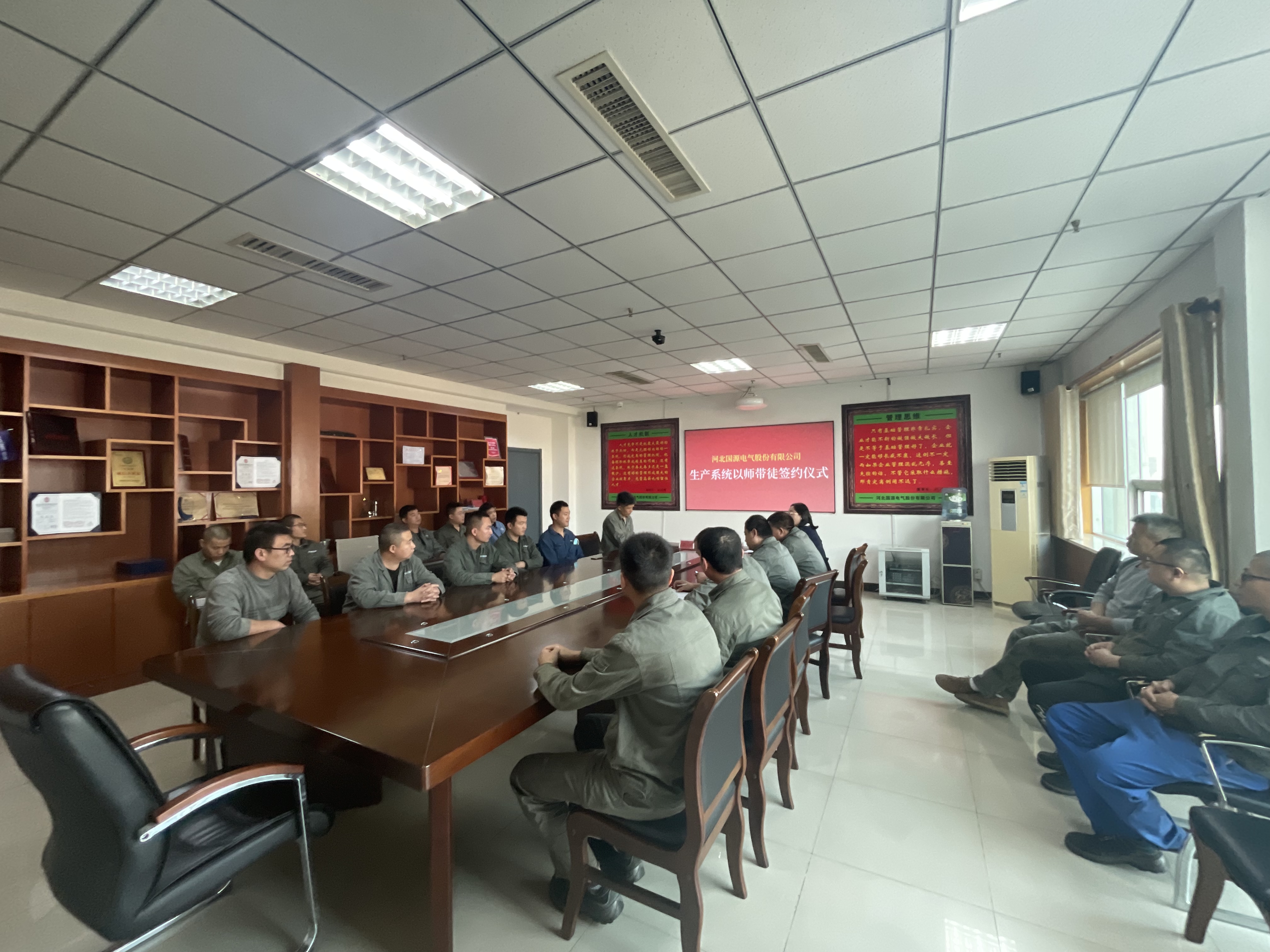 主機廠機加車間主任王立輝宣讀《河北國源電氣股份有限公司師徒協議》。